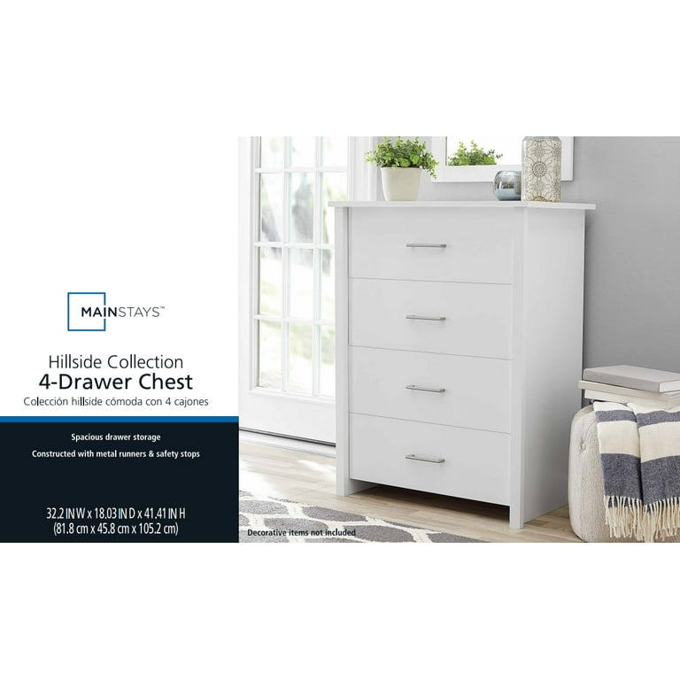 Mainstays Hillside 4 Drawer Dresser White Finish Walmart Com